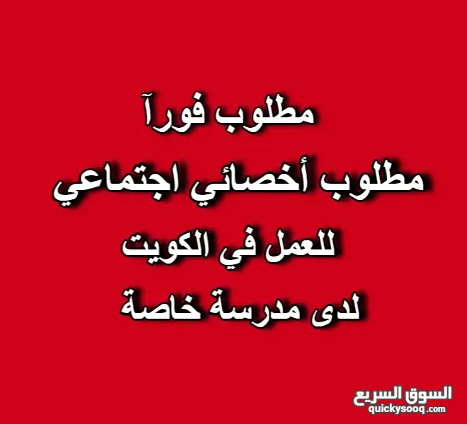 مطلوب أخصائي اجتماعي للعمل في مدرسة خاصة في الكويت