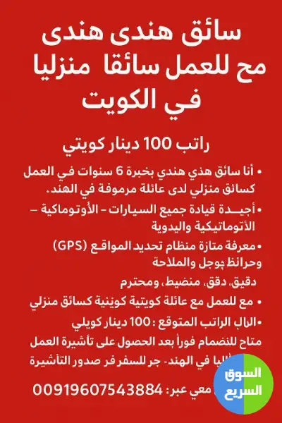 الراتب المتوقع: 100 دينار كويتي شهريًا