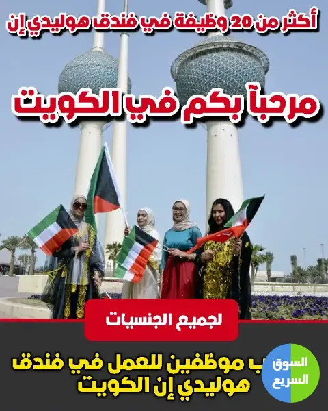 1️⃣ أعلن فندق هوليداي إن (Holiday Inn) في الكويت عن توفر (20) وظيفة شاغرة متعددة في قطاع الضيافة ضمن بيئة عمل فاخرة (فندق 5 نجوم).